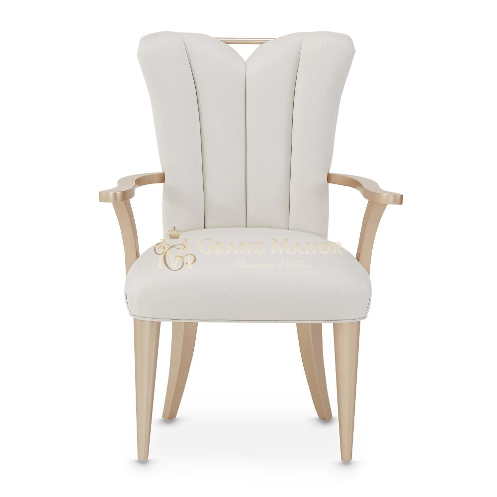 Подчеркните свой модный стиль. Обеденное кресло La Rachelle отличается шикарной двойной расклешенной спинкой и изящной ручкой сверху. Это кресло, отделанное мягчайшей тканью, готово сиять в любое время.