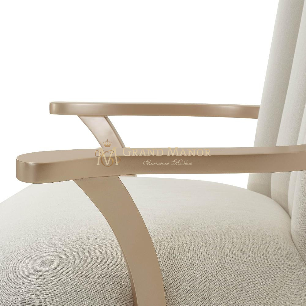 Расклешенная спинка стула украшена вертикальной отстрочкой и ручкой сверху.