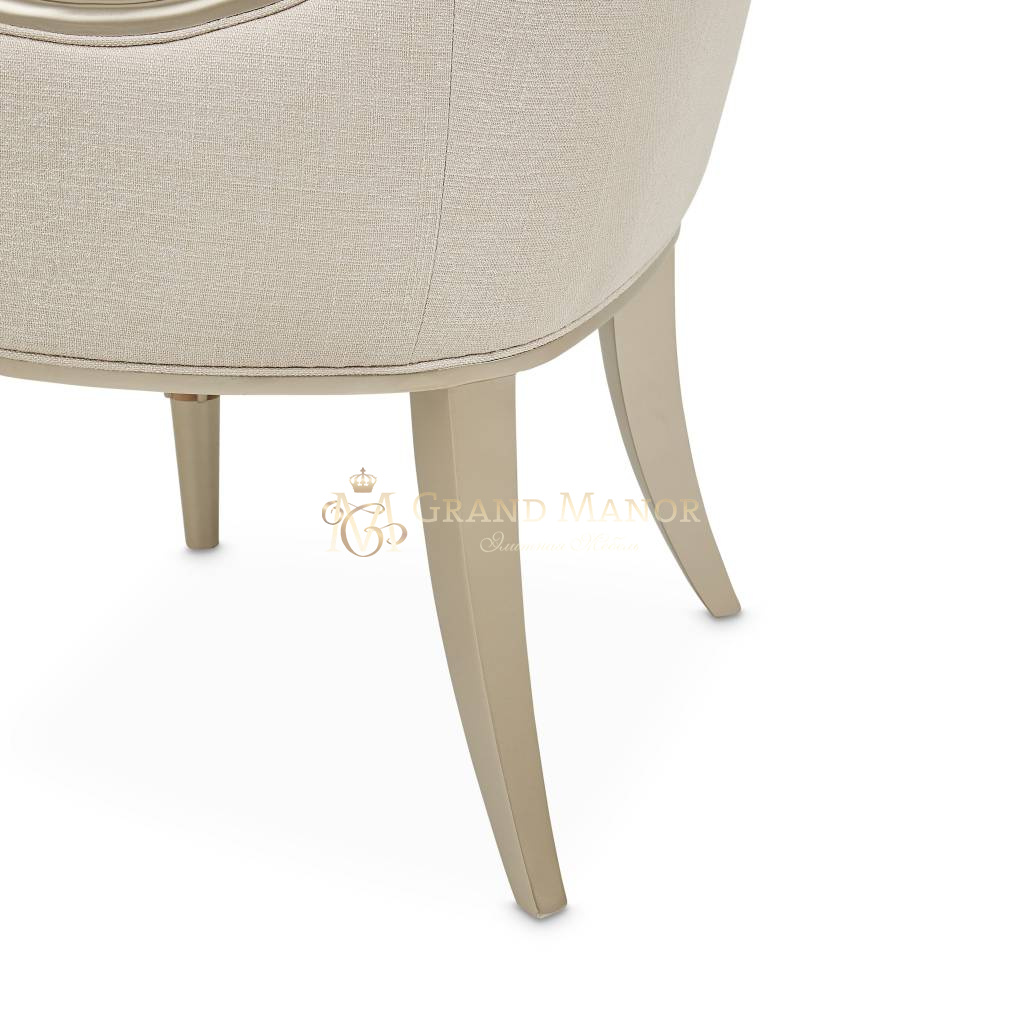 Важен каждый изгиб. Неподвластный времени стиль кресла Villa Cherie определяется его широкими линиями и элегантными формами. Благодаря обивке из ламинированного ворса и акцентам цвета шардоне, придающим мягкий блеск, этот дизайн гарантированно подчеркнет роскошь обеденных пространств.