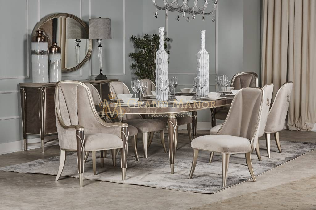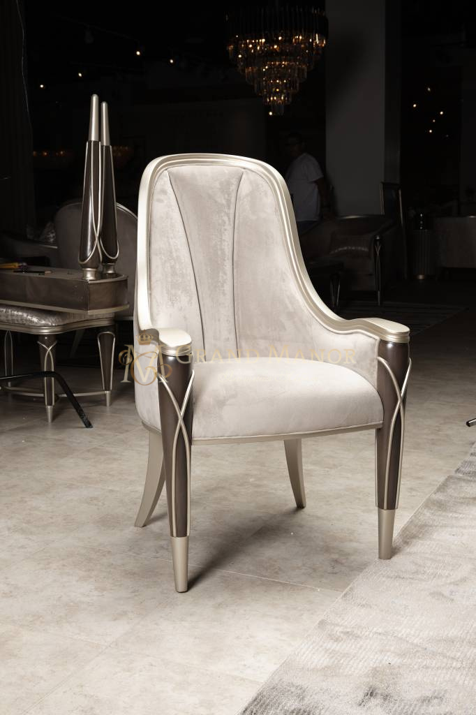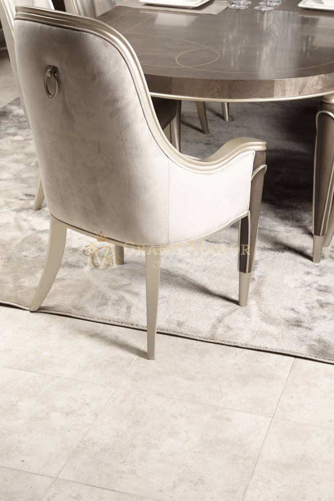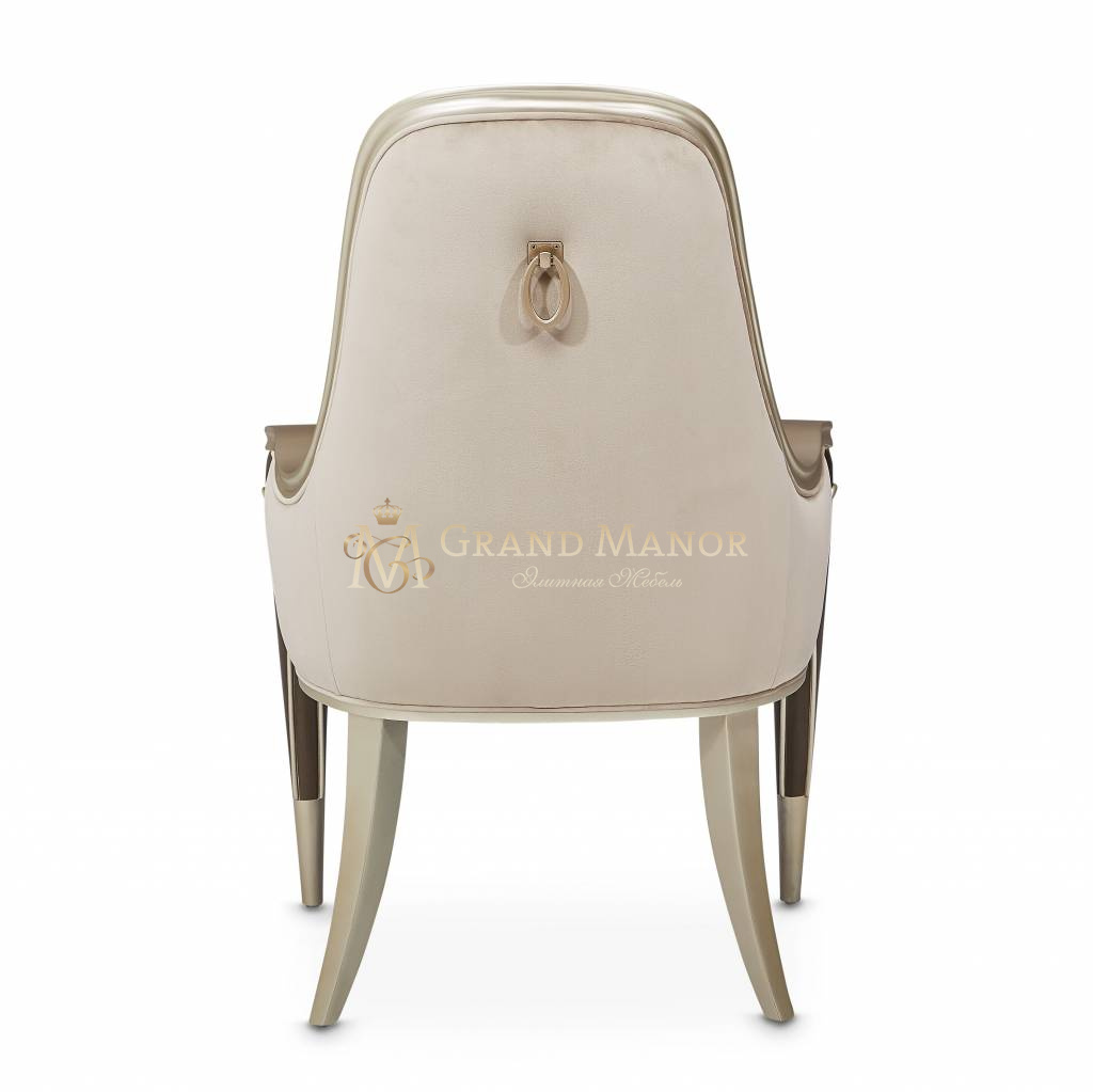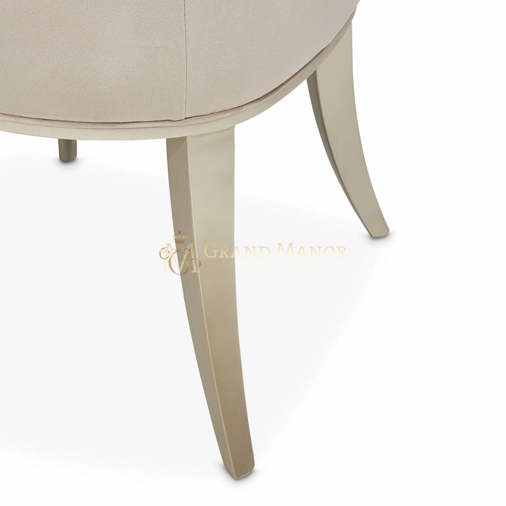 Важен каждый изгиб. Неподвластный времени стиль обеденного кресла Villa Cherie определяется его широкими линиями и элегантными формами. Благодаря обивке из ламинированного ворса и акцентам цвета шардоне, придающим мягкий блеск, этот дизайн гарантированно подчеркнет роскошь обеденных пространств.