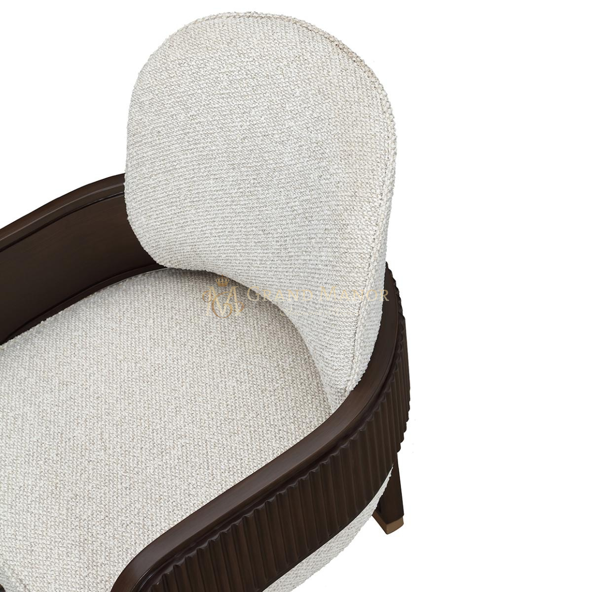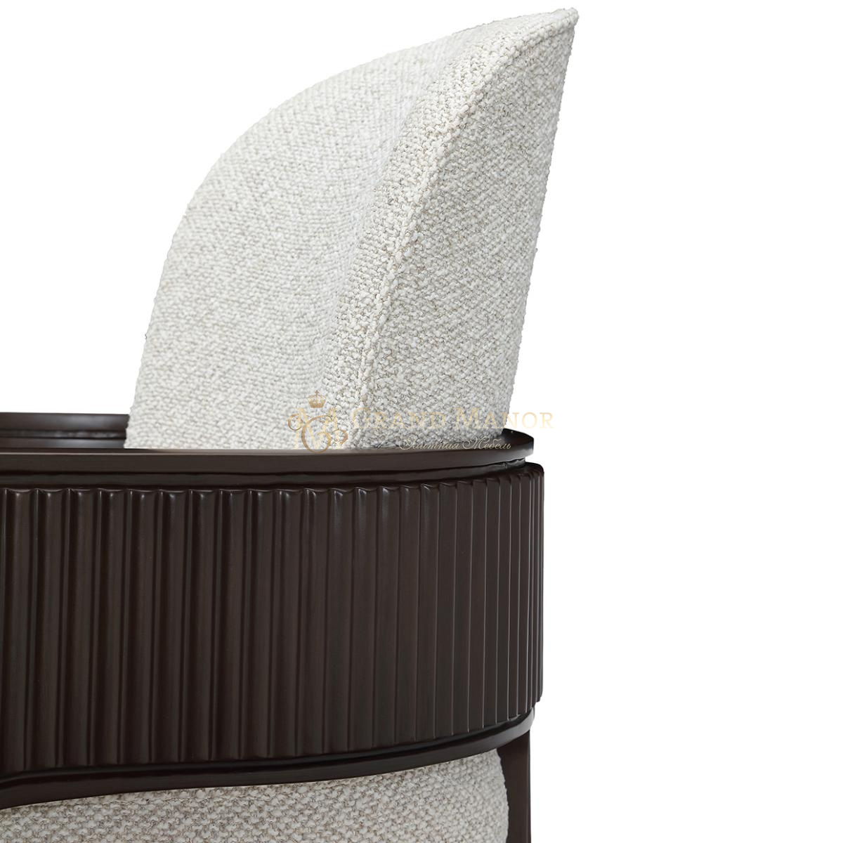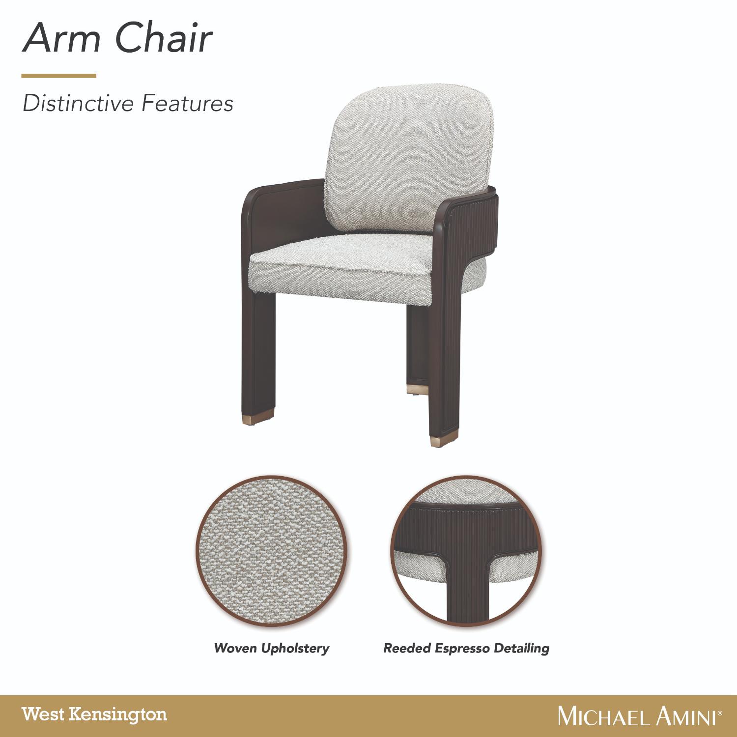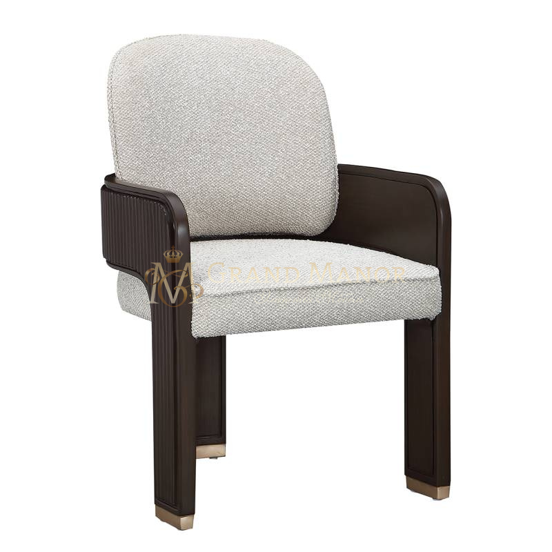 Скульптурная элегантность сочетается с утонченным мастерством исполнения в обеденном кресле West Kensington. Это кресло с изящно изогнутым силуэтом обито мягкой тканью из плотной ткани с разноцветной пряжей, которая создает богатый текстурный контраст с его глубоким корпусом цвета эспрессо.