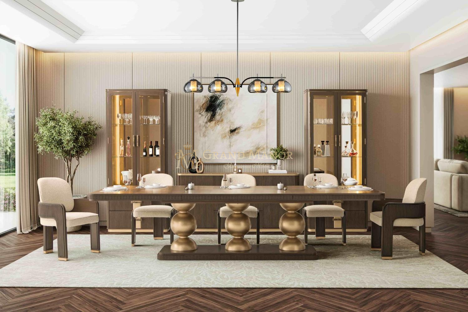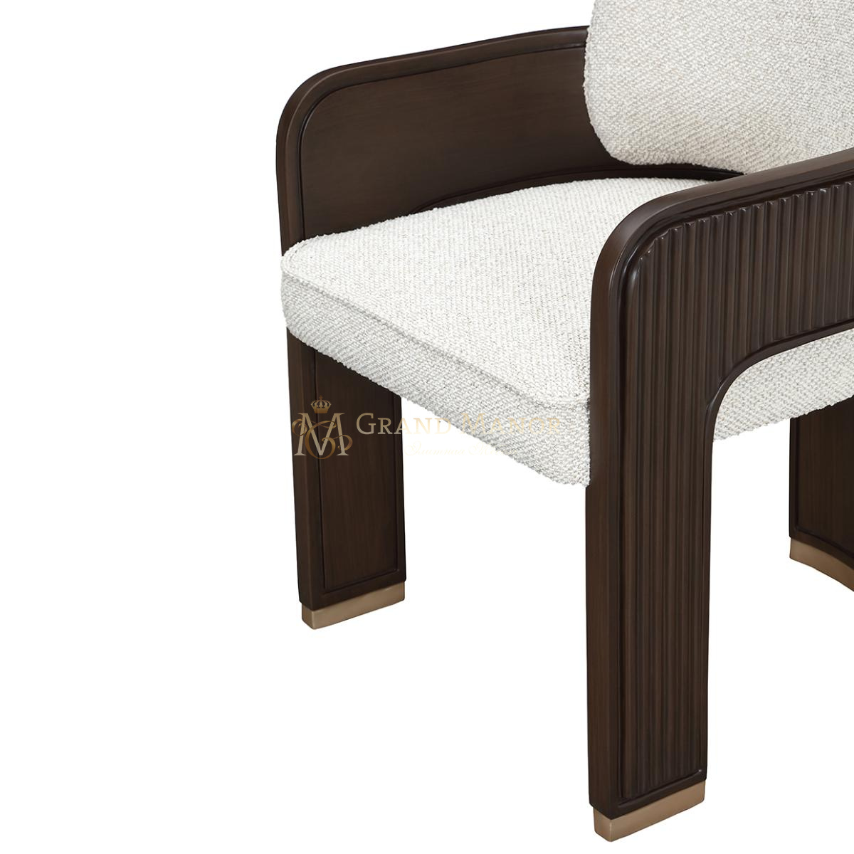Спинка и ножки украшены фирменной отделкой из тростника, придающей им архитектурную глубину, а тонкая золотая отделка подчеркивает изысканность. Благодаря идеальному балансу структуры и мягкости, этот стул своей роскошью украсит любой обеденный стол.