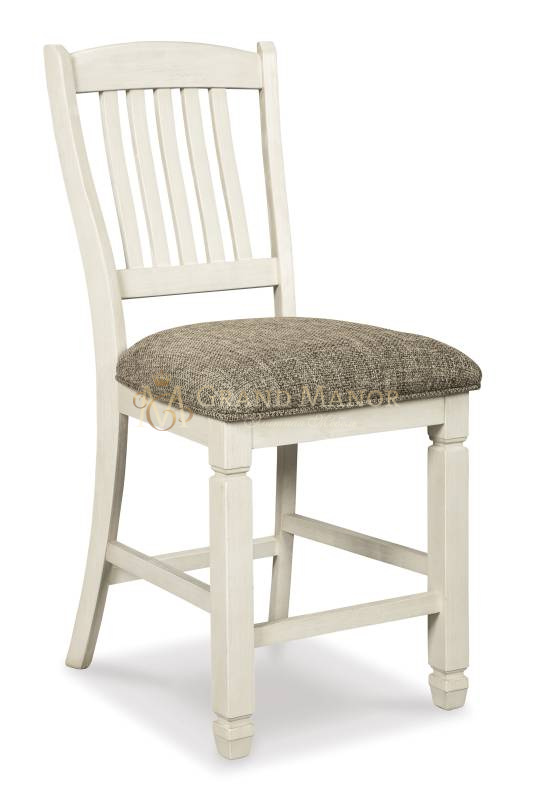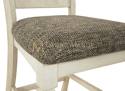Этот барный стул с наклонной спинкой, разработанный для обеспечения комфорта и стиля, соблазняет мягким сиденьем, покрытым тяжелой тканью, которая дополняет состаренную белую отделку.