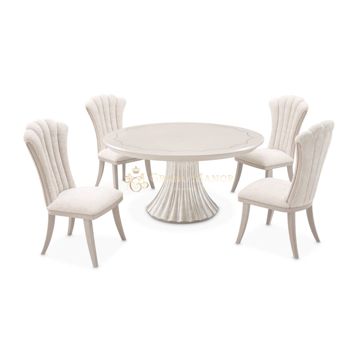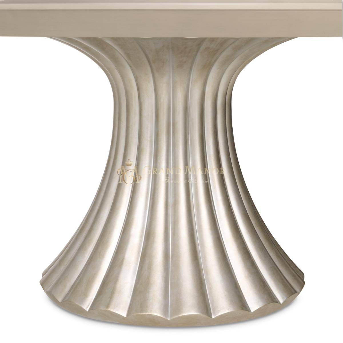 Круглый обеденный стол Fantosini — это воплощение утонченной элегантности и художественного мастерства. Его изысканная столешница из шпона дуба с мягким серебристым покрытием украшена ручной росписью, которая подчеркивает изящный изгиб. В центре внимания — подставка в стиле ар-деко с рифленой поверхностью, сияющей серебром и создающей ощущение вечного гламура. Этот стол рассчитан на пятерых гостей и идеально подходит для уютных семейных вечеров, превращая любое застолье в незабываемое событие.