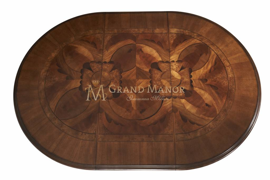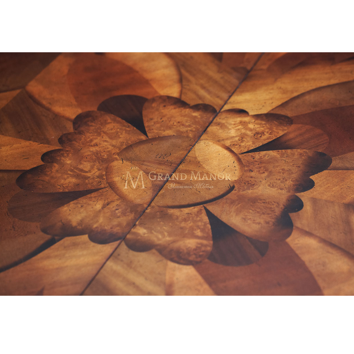 Потрясающее маркетри и замысловатая ботаническая резьба по всему столу.
