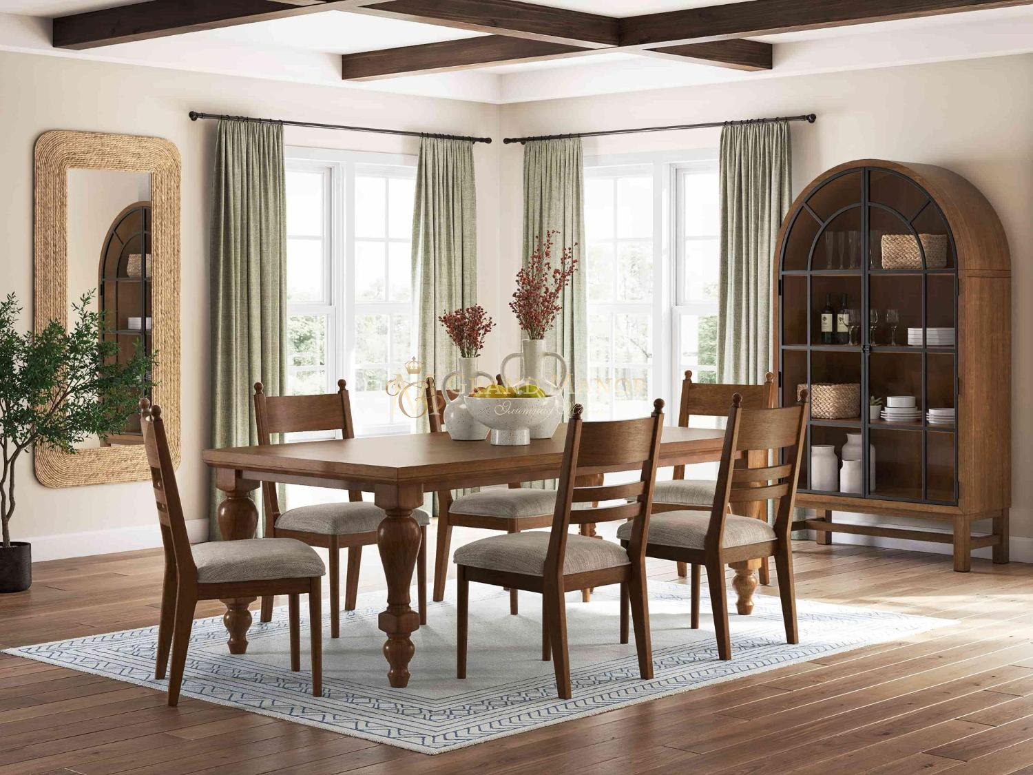 Непринужденная атмосфера и уютный комфорт — вот что такое традиционный дизайн в стиле фермерского дома. И что может быть лучше, чем выразить свою любовь к деревенскому стилю с помощью этого обеденного стола? Его массивная столешница из дерева и массивные точеные ножки сочетают в себе функциональность и классическую привлекательность, создавая ощущение свежести. Этот стол можно сочетать с разными стульями из коллекции, чтобы создать эклектичный образ.