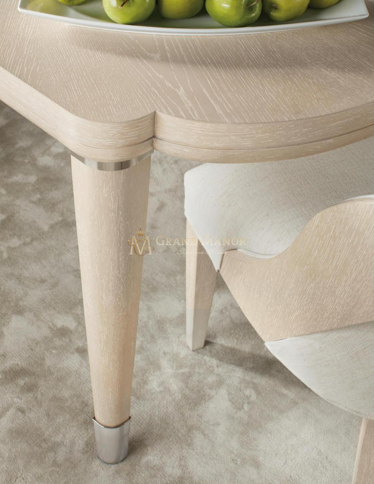 Одна вставка 56 см удлиняет стол до 264 см. Стол вмещает до 6 стульев без вставки и 8 стульев в разложенном виде. Металлический акцент в верхней части ножек.