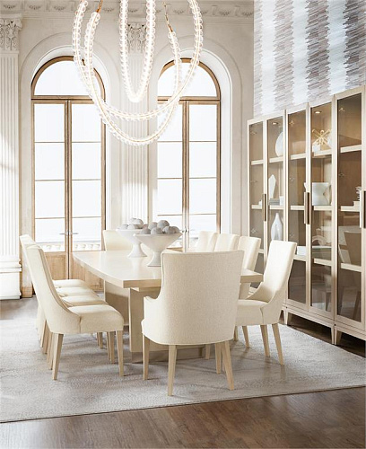 Преобразите свое обеденное пространство с помощью изысканного прямоугольного обеденного стола Westwood. Благодаря двум 20-дюймовым вставкам этот элегантный стол удлиняется на 320 см, что делает его идеальным для больших собраний. Облицовка из дубового шпона с отделкой из полированного известняка в сочетании с позолоченной фурнитурой и двойными опорными основаниями создают утонченную роскошь и современный дизайн. Этот обеденный стол идеально подходит для тех, кто ценит минимализм с оттенком современности. Этот обеденный стол сочетает в себе форму и функциональность для любой высококлассной столовой.