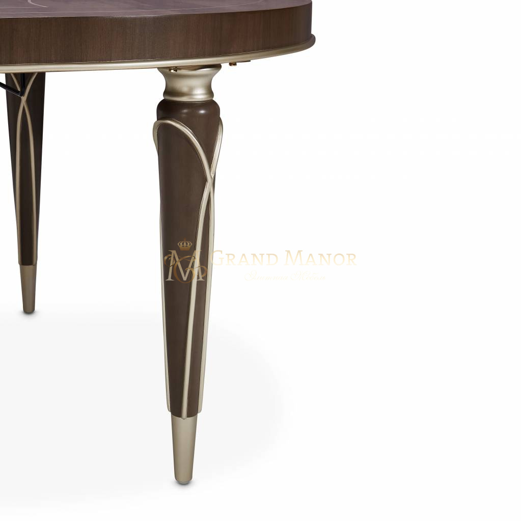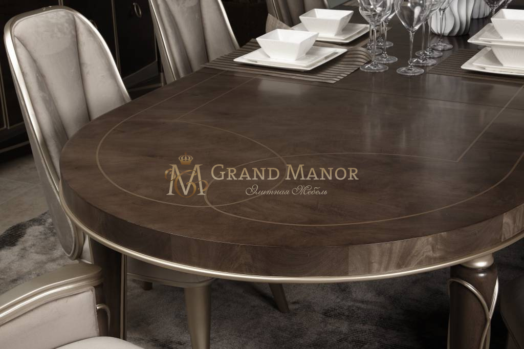 Ничто так не подчеркивает роскошь, как овальный обеденный стол Villa Cherie. Благодаря заостренным ножкам, смелым тонам и деталям цвета Шардоне вы будете чувствовать себя элегантно каждый день.
