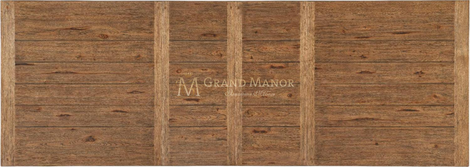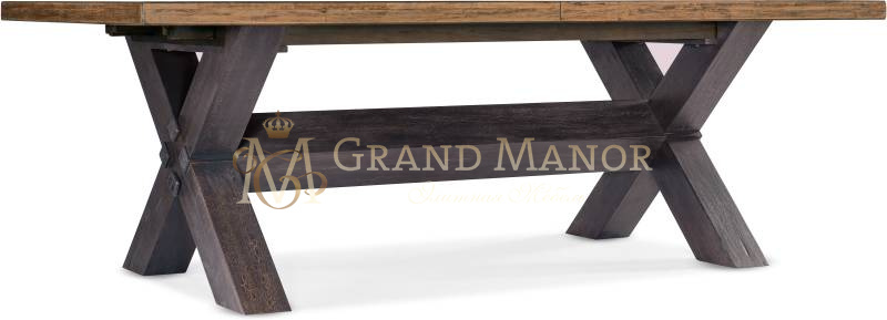 Столешница, выполненная из шпона ореха Гикори с аутентичной окантовкой из массива дерева, выполнена в теплой винтажной натуральной отделке, контрастирующей с основанием в стиле X с отделкой из обожженного дерева.