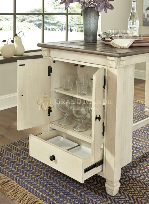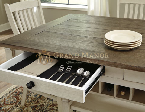 Четыре плавно выдвигающихся ящика позволяют держать салфетки и столовые приборы под рукой.