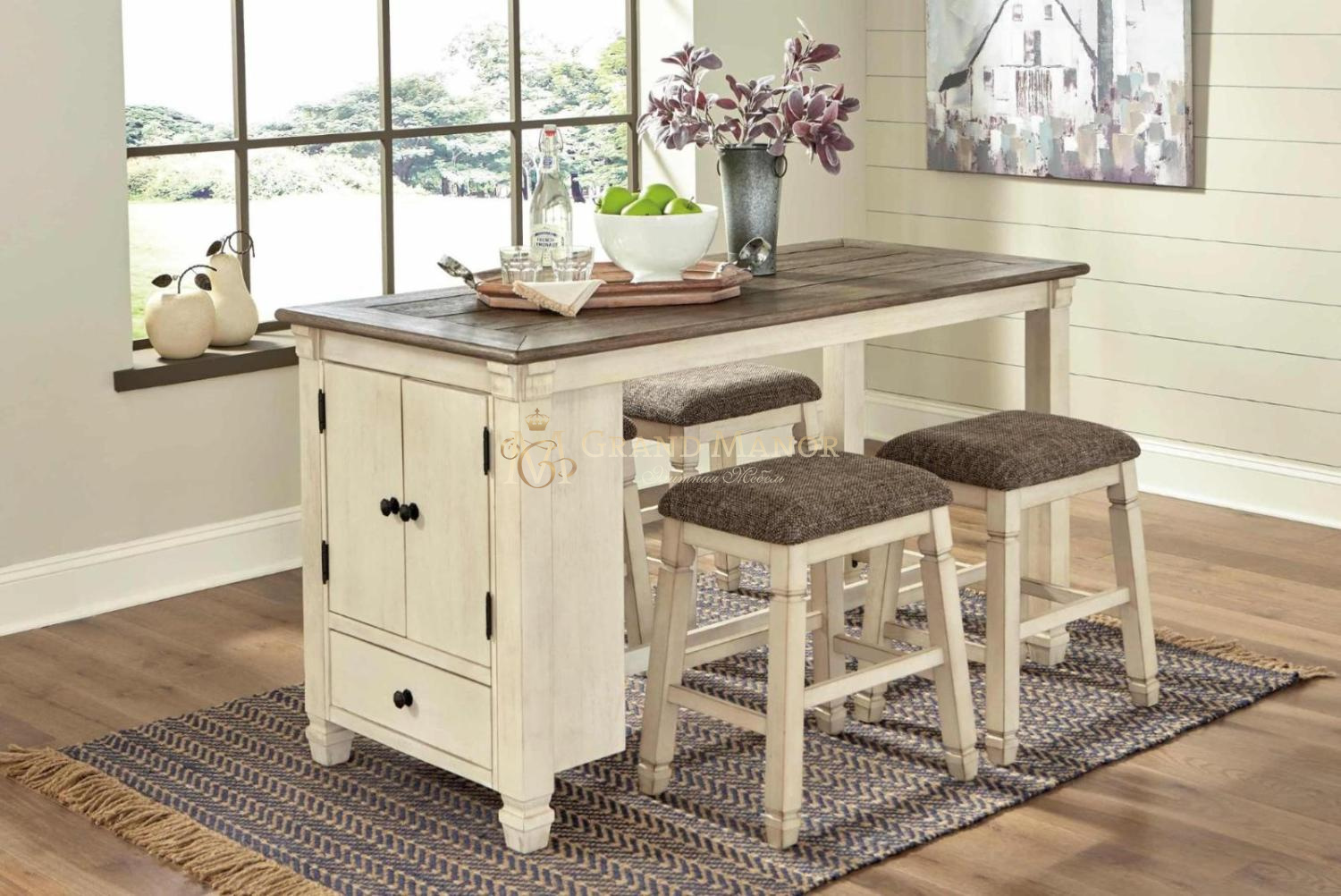 Двухцветная текстурная отделка придает этому обеденному столу со столешницей с эффектом досок двойное очарование.