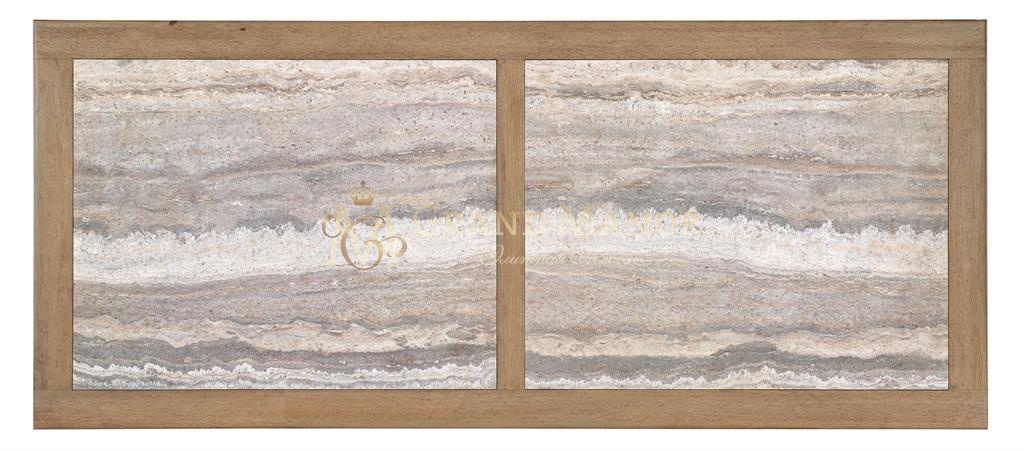 Материалы: Массивный шпон из ореха Гикори и шлифованный серый травертин.