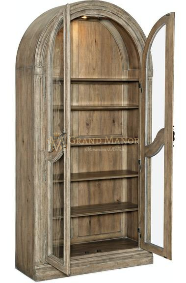 Две верхние полки представляют собой регулируемые стеклянные деревянные рамы с пазами для тарелок.