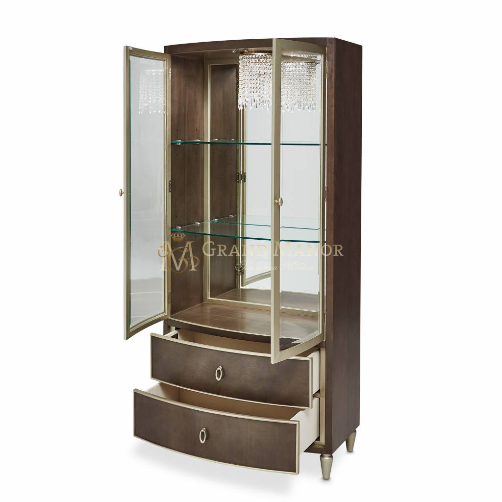Придайте интерьеру стиль и шик с помощью серванта-витрины Villa Cherie. Украшенной сверкающей мини-люстрой и имеющей идеальное пространство для хранения и демонстрации, ваш хрусталь и фарфор привлекут внимание, которого они заслуживают!