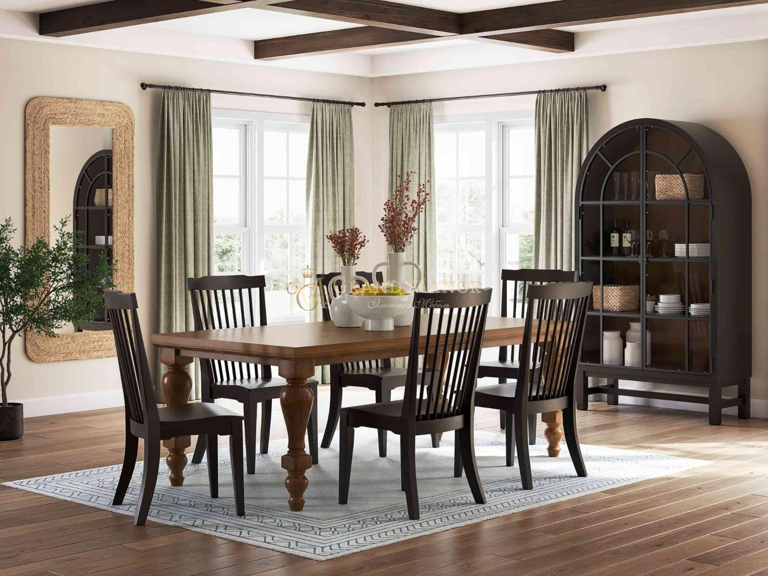 Непринужденная атмосфера и уютный комфорт — вот что такое традиционный дизайн в стиле фермерского дома. И что может быть лучше, чем выразить свою любовь к деревенскому стилю с помощью этой витрины? Высокие арочные дверцы и широкие полки сочетают в себе функциональность и классическую привлекательность, создавая ощущение свежести.