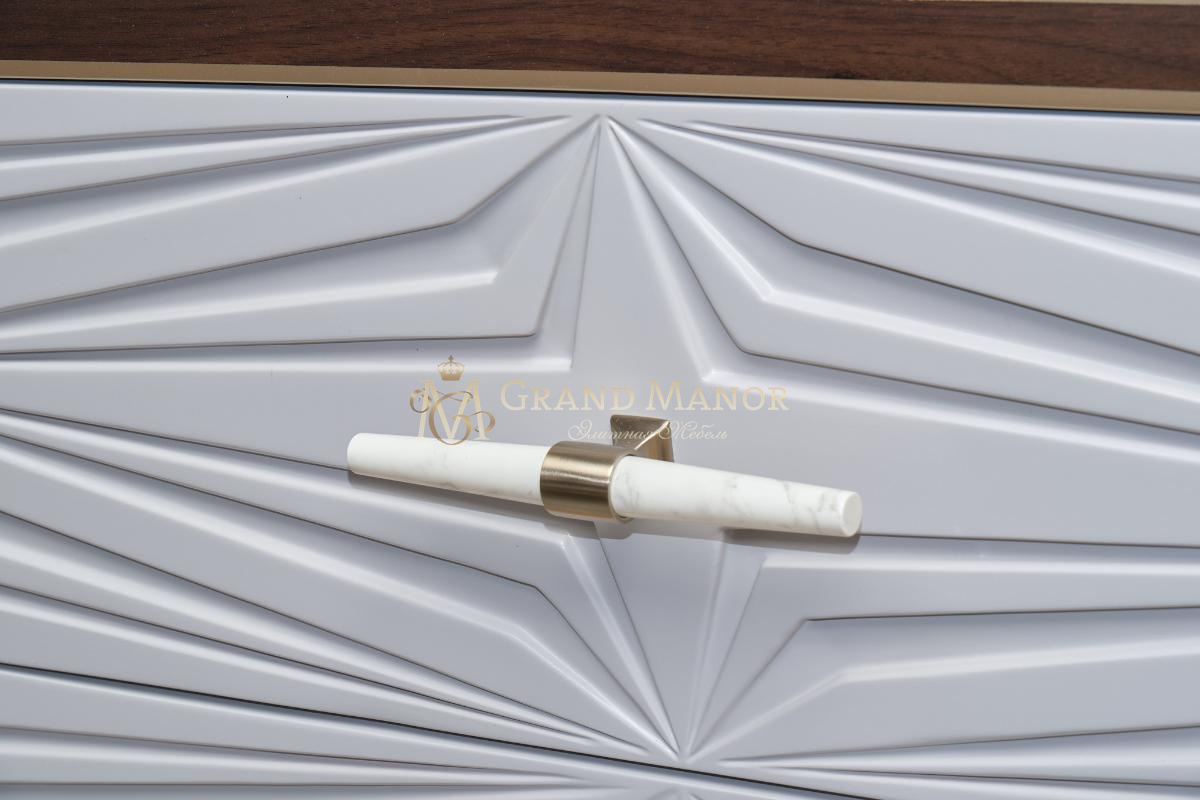 • Элегантный современный дизайн – богатая отделка из орехового дерева, золотая отделка и современные фасады ящиков с рисунком starburst придают им изысканности.