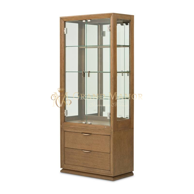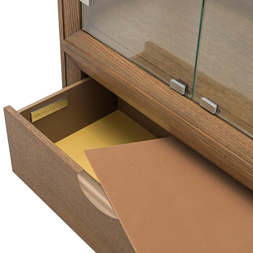 Сервант-витрина Portrait превращает ценные коллекции в сияющий фокус. Его высокий, внушительный силуэт обрамлен шпоном из теплого дуба Sienna, что обеспечивает идеальный баланс между элегантностью, неподвластной времени, и современной простотой.