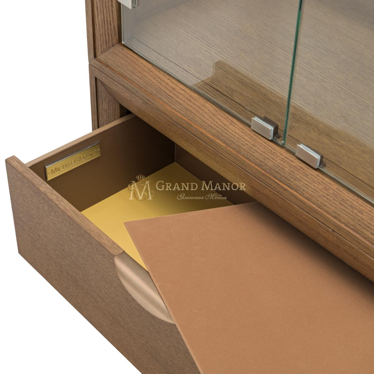 В основании расположены два незаметных выдвижных ящика для скрытого хранения, красиво украшенных скульптурной бронзовой фурнитурой, которая повторяет весь дизайн.