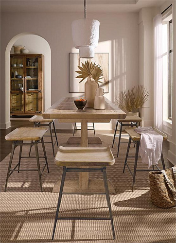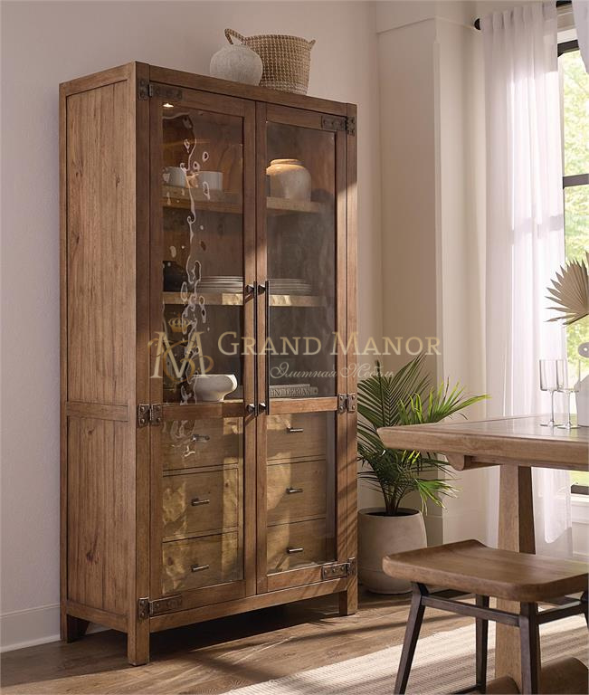 Коллекция Vineyard Row от Hooker Furniture вдохновлена органической красотой калифорнийской винодельческой страны, а вся коллекция сочетает в себе деревенский шарм и органическую эстетику долины Напа. Светлая отделка с темными акцентами, разработанная для использования в различных стилях жизни и регионах, позволяет гармонично сочетать как деревенскую, так и более изысканную обстановку. Такие детали, как обшивка из шпона высокого качества, кованая металлическая фурнитура в деревенском стиле, металлические подрамники и тонированное стекло, подчеркивают его аутентичный стиль.