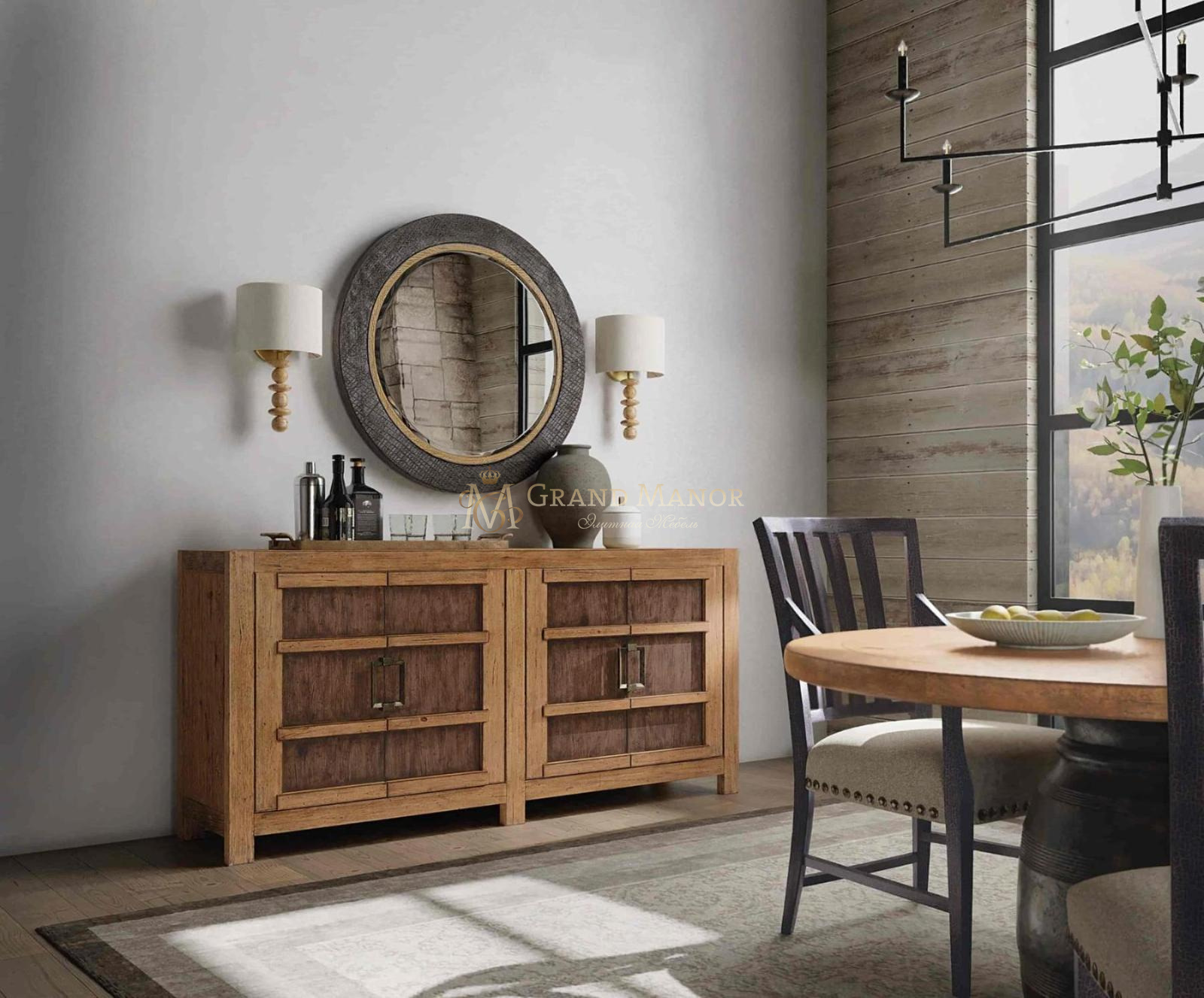 Отделка буфета выполнена натуральным материалом Vintage Natural, который подчёркивает красоту сучков и текстуру древесины.