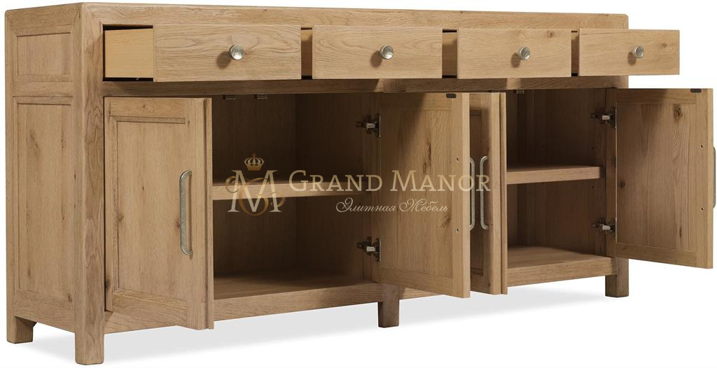 Благодаря столешнице с инкрустацией камнем и отделке Buckboard, напоминающих выгоревший на солнце дуб, этот буфет отличается долговечностью и деревенским шармом. Благодаря четырем самозакрывающимся выдвижным ящикам со съемным подносом для столового серебра, четырем деревянным дверцам с плавно закрывающимися петлями и регулируемым полкам в нем достаточно места для хранения вещей. Поверхность из натурального камня придает текстуру и роскошь, что идеально подходит для современных обеденных залов в загородном стиле.