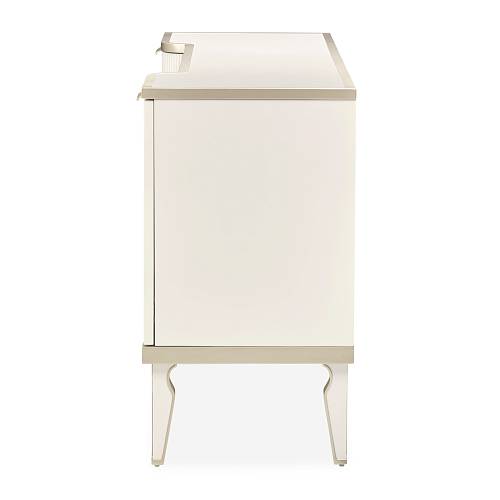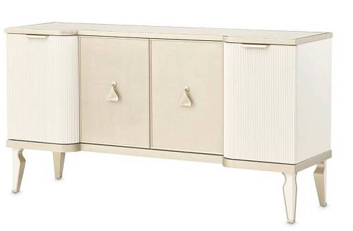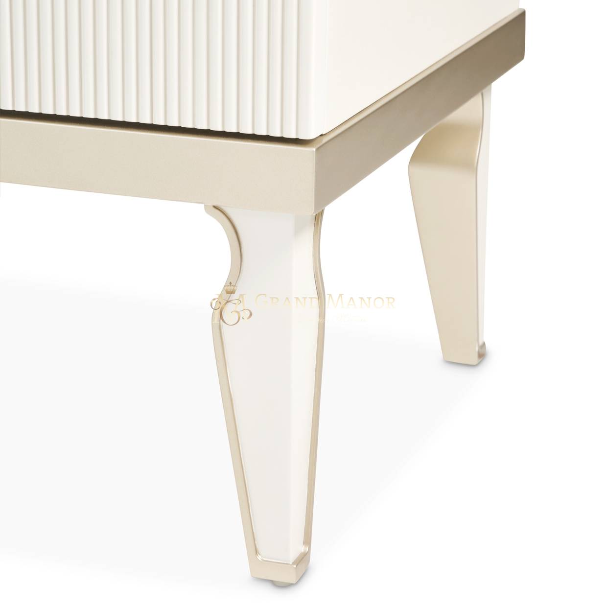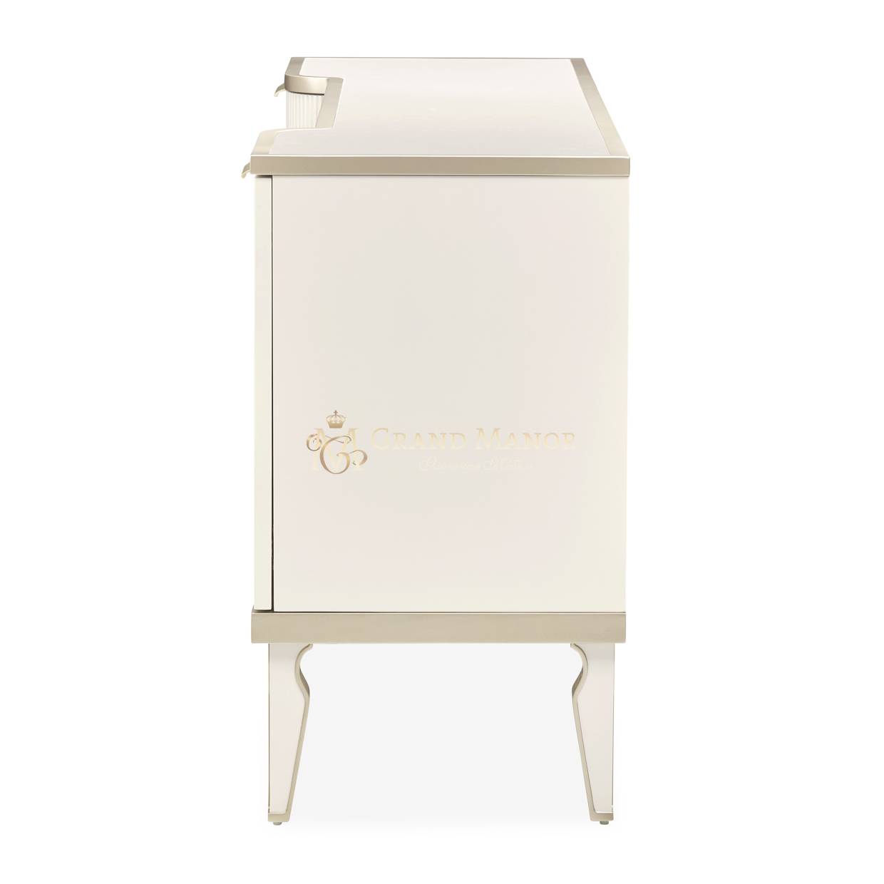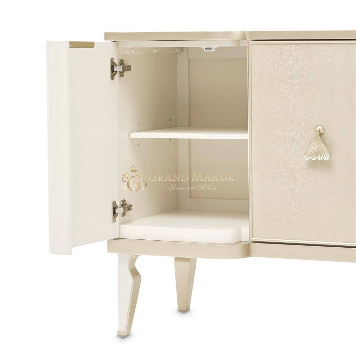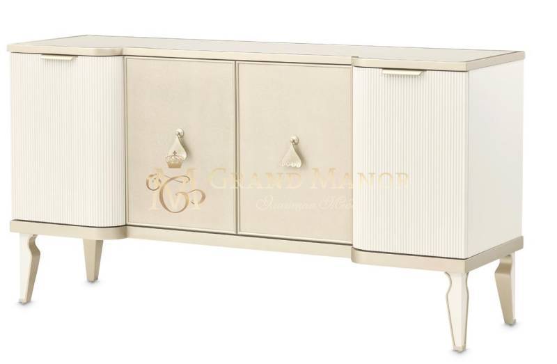 Сервант La Marisia — это образец утончённости, сочетающий в себе уникальные текстуры и изящные детали. Его жемчужная отделка, дополненная золотом цвета шампанского, создаёт скульптурный силуэт, а роскошная столешница из искусственного мрамора обеспечивает элегантную поверхность для декора и сервировки повседневных вещей.