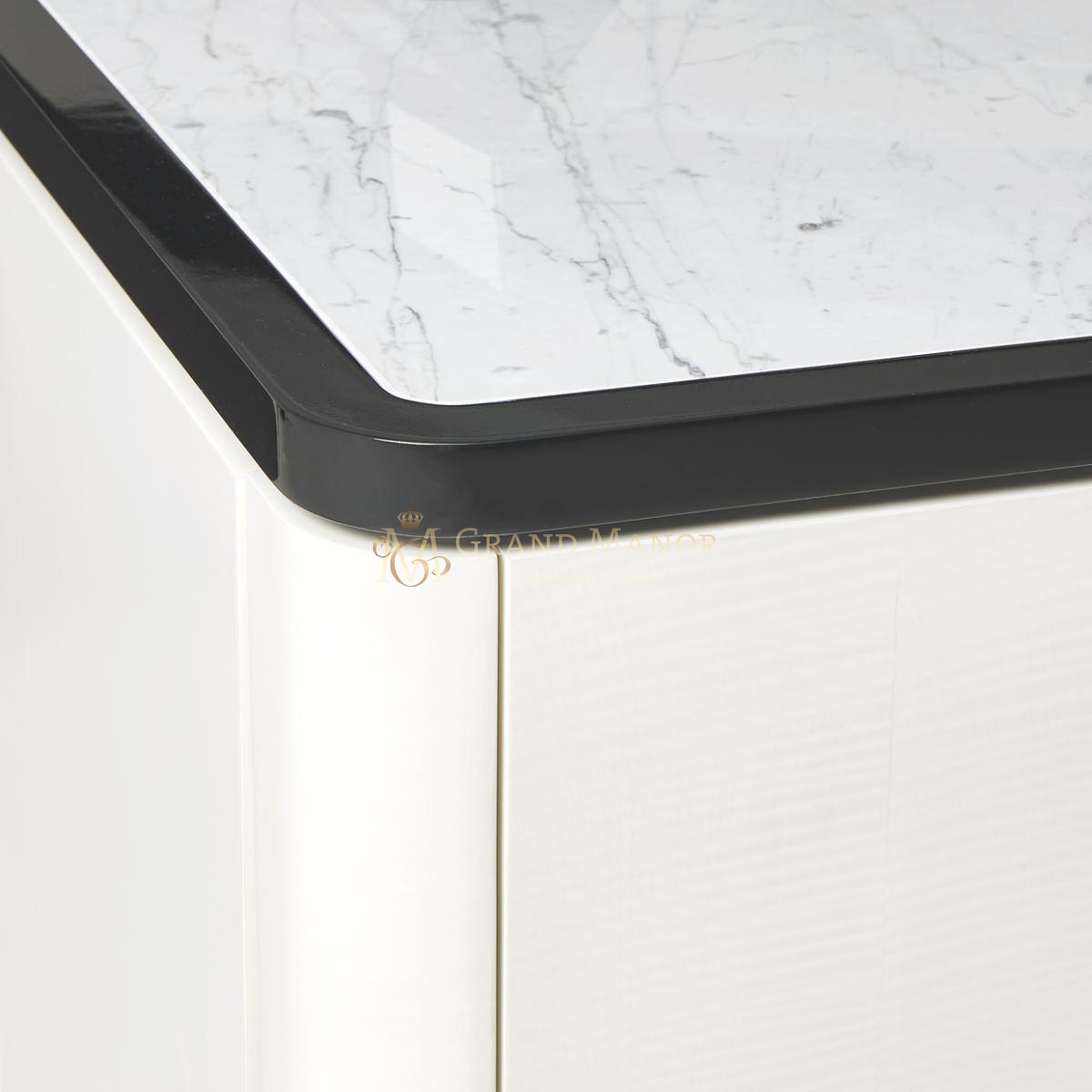 Сервант Tuxedo, украшенный изящной мраморной инкрустацией, сочетает в себе изысканную эстетику и практичный дизайн.