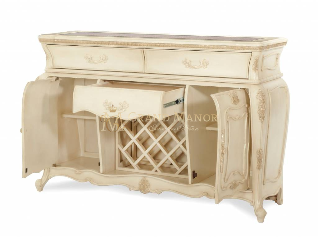 Интерьер столовой не будет иметь завершенный вид, если здесь нет сервировочного комода. Этот функциональный предмет мебели идеально подходит для хранения столовых приборов. Комод из коллекции Lavelle привлекает внимание своим элегантным дизайном, который станет гармоничным дополнением пространству, оформленному в классическом стиле.
